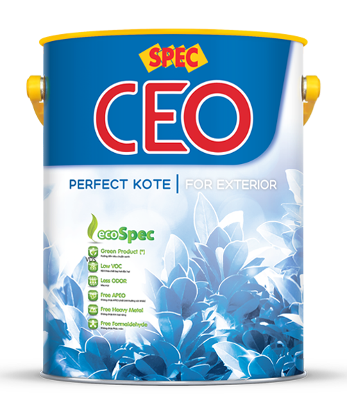 SPEC CEO PERFECT KOTE FOR EXTERIOR – SƠN NGOẠI THẤT CHỐNG THẤM, BÓNG CAO CẤP là sản phẩm sơn nội thất hướng đến các tiêu chuẩn xanh với hàm lượng V.O.C thấp, nhẹ mùi, không ảnh hưởng đến sức khỏe và môi trường, giúp bảo vệ tối đa và thích hợp với các công trình nhà phố, biệt thự, khách sạn cao cấp hay các khu vực công cộng như các trung tâm thương mại, bệnh viện …