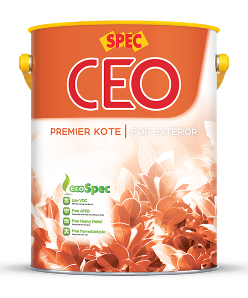 SPEC CEO PREMIER KOTE FOR EXTERIOR – SƠN NGOẠI THẤT CHỐNG THẤM, BẢO VỆ HOÀN HẢO là sản phẩm chống thấm cho các công trình cao cấp, có độ che phủ cao cùng khả năng chống lại sự sinh trưởng của rong rêu và nấm mốc hiệu quả. Với bộ sưu tập màu sắc đẹp và phong phú, sơn thích hợp cho việc trang trí, bảo vệ bề mặt tường nội và ngoại thất.