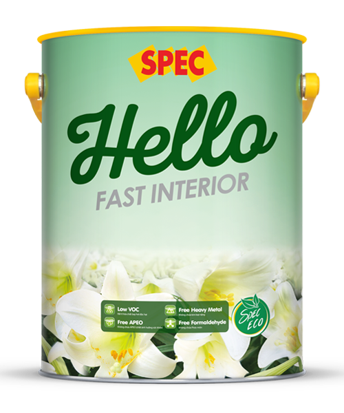 SPEC HELLO FAST INTERIOR – SƠN NƯỚC NỘI THẤT là sản phẩm sơn nước nội thất cho màng sơn mịn màng cùng bộ sưu tập màu sắc đẹp và phong phú, thích hợp cho việc trang trí và bảo quản bề mặt tường nội thất.