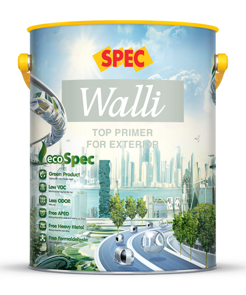 SPEC WALLI TOP PRIMER FOR EXTERIOR – SƠN LÓT NGOẠI THẤT SIÊU KHÁNG KIỀM VÀ KHÁNG MUỐI là sản phẩm sơn lót ngoại thất thế hệ mới, với hàm lượng V.O.C thấp, thân thiện với môi trường, không gây hại sức khỏe và không gây ô nhiễm môi trường. Sản phẩm có tính năng siêu kháng kiềm và kháng muối vượt trội kháng tụ muối can-xi cùng độ bám dính cao, giúp lớp sơn phủ luôn bám chặt vào bề mặt tường, không bong tróc và ngăn chặn kiềm hóa màu sắc hiệu quả.