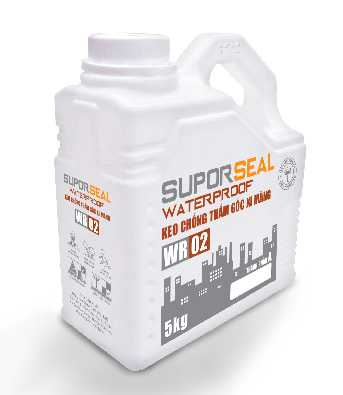 SUPORSEAL WATERPROOFING WR02 – KEO CHỐNG THẤM GỐC XI MĂNG là chất chống thấm 2 thành phần gồm polyme lỏng A và bột trộn sẵn B. Sản phẩm được sử dụng như màng chống thấm hiệu quả cho nhiều bề mặt như: Lớp chống thấm cho mặt trong của bể nước, hố ga, bồn trồng cây, trước khi lót gạch hay các công trình hoàn thiện khác. Chống thấm thềm, ban công, bếp và nhà vệ sinh. Chống thấm cho cầu, cầu vượt trước khi làm lớp ngoài để bảo vệ bê tông khỏi thấm nước mưa. Ngoài ra sản phẩm còn trám các vết nứt chân chim (các vết nứt đã định hình).